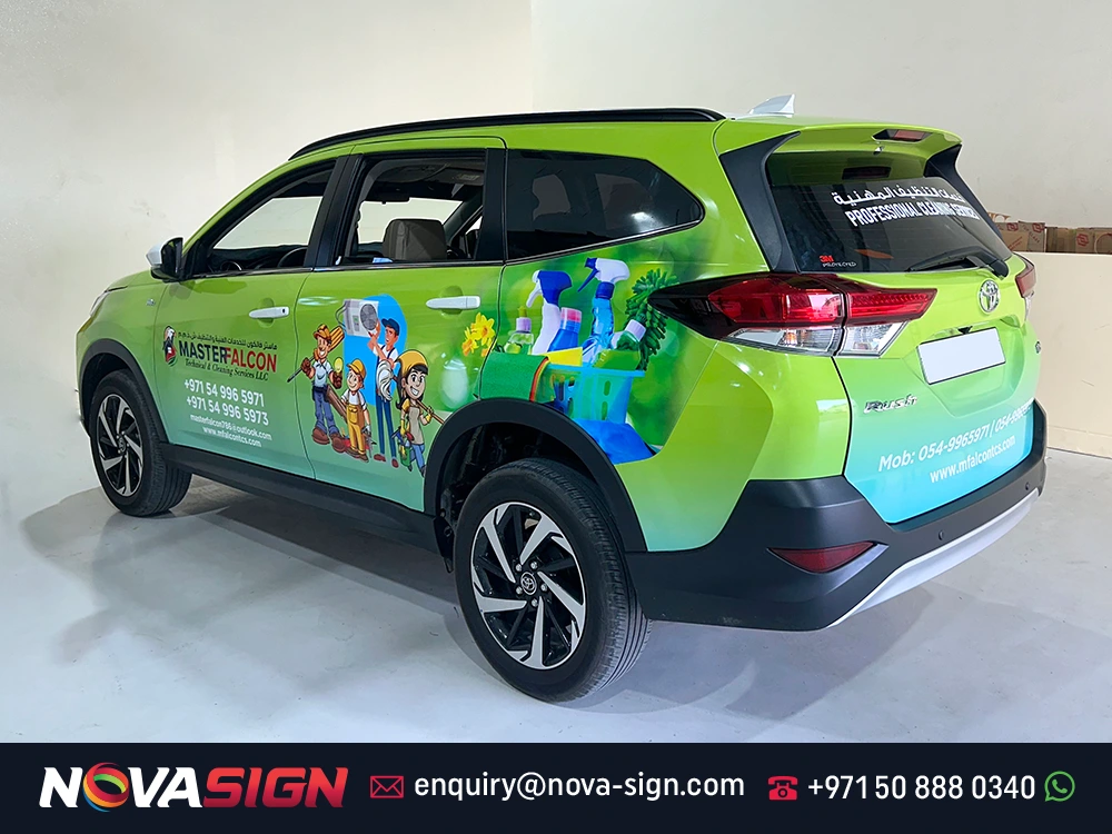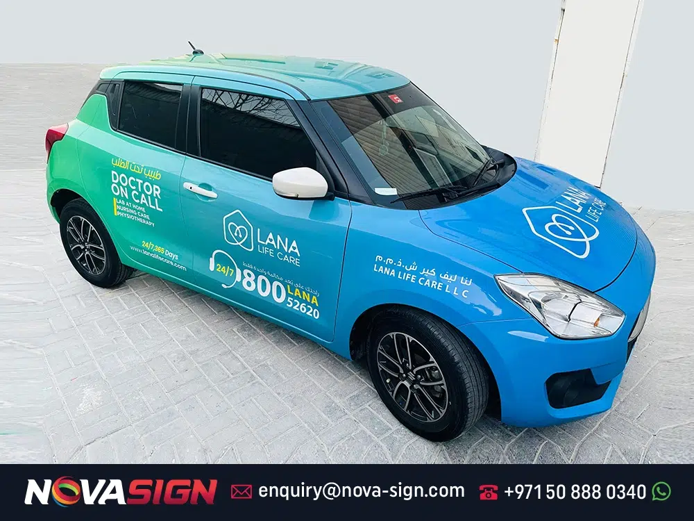 Nova Sign delivers car branding in Dubai that aligns with your brand identity. Our strategic approach to car signage, branding cars, and car branding ensures your vehicle becomes a moving billboard that attracts attention, builds confidence, and drives real business growth.