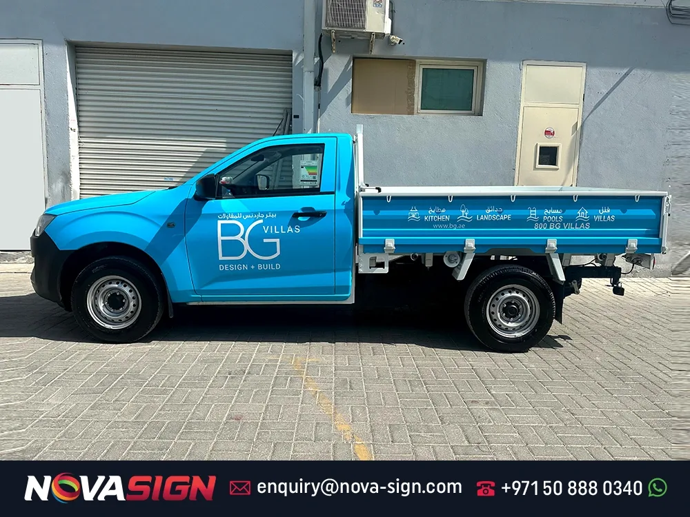 Fleet branding in Dubai typically takes 1–3 days per vehicle, depending on the design complexity and number of vehicles in the fleet.